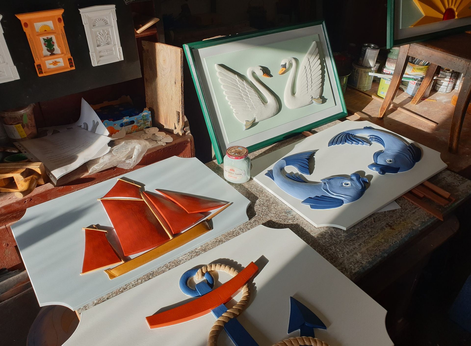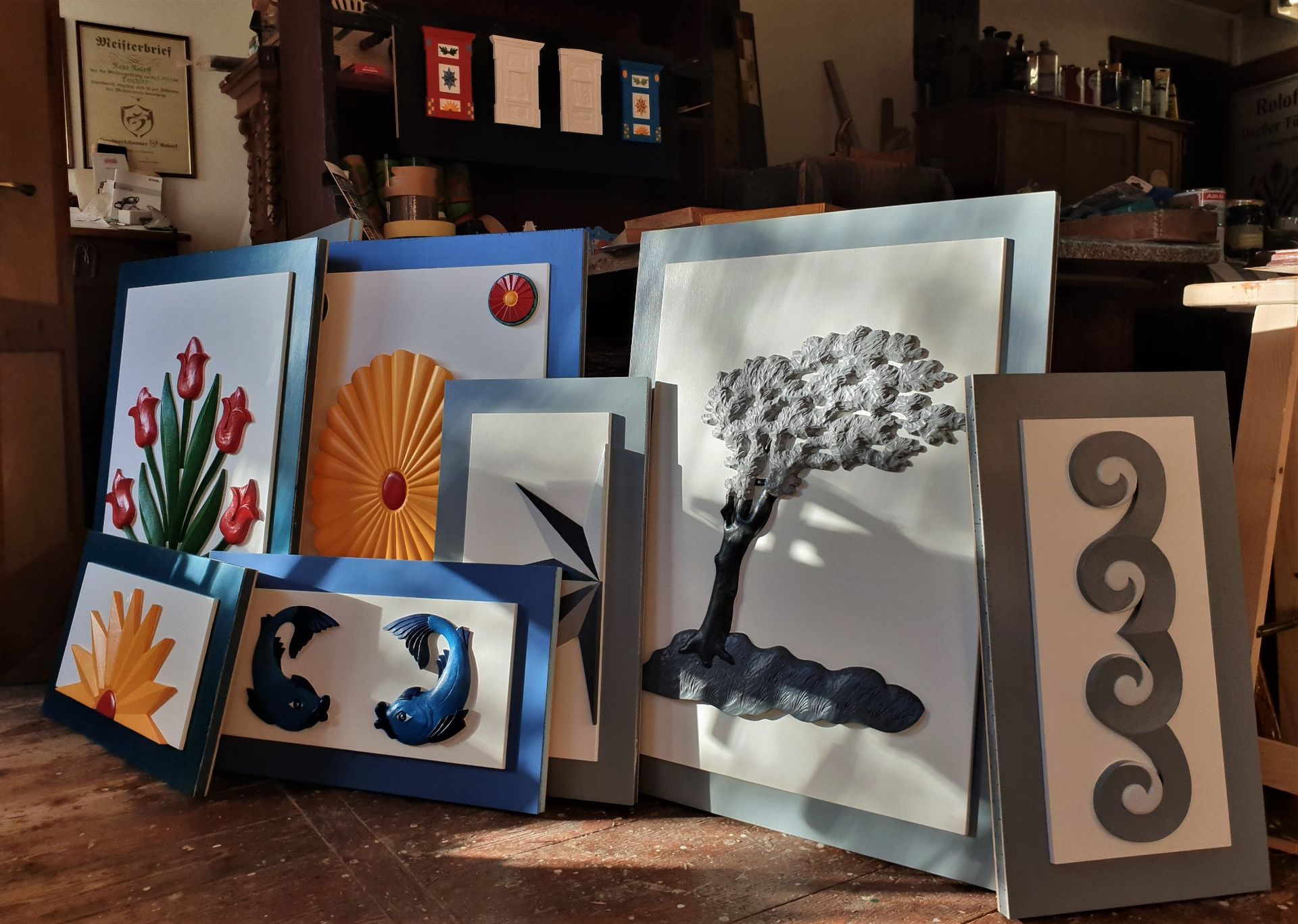 In mehreren Schichten bemalen wir unsere Arbeiten. Was länger dauert, hält auch länger. Nachhaltigkeit ist bei uns kein Zeitgeist, sondern Grundeinstellung.